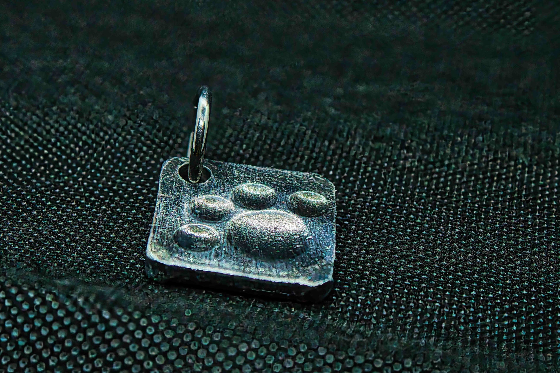 Make a statement with our Paw Print Dog Tag! Made from hand forged steel, this 1 inch square dog tag features a unique paw print design. Comes with a stainless steel ring to hang it from a strong #6 ball chain necklace (also made in the USA), included.